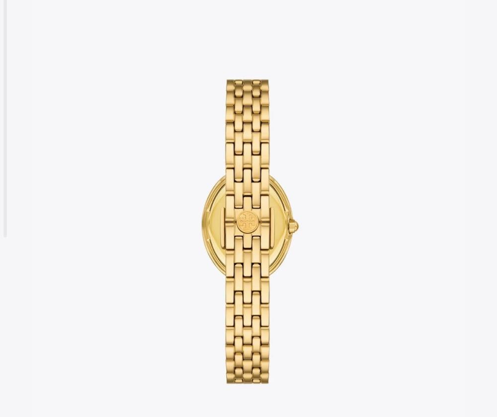 أنيق وأنثوي، قرص بيضاوي من الفولاذ المقاوم للصدأ بلون ذهبي مع سوار ربط كلاسيكي. أسلوب متطور يشبه المجوهرات يمكن ارتداؤه كل يوم أو مع ملابس رسمية. شاهد أقل